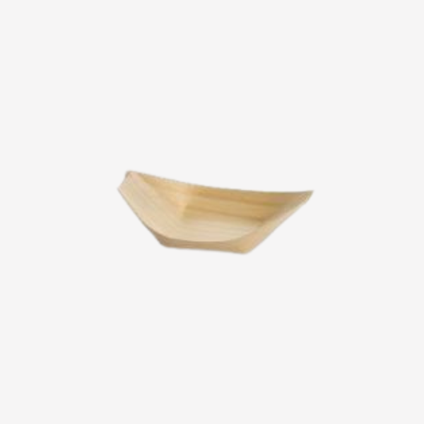 Serveringsbåd i FSC-certificeret poppeltræ med længde på 80 mm. Velegnet til små serveringer – 100 stk.