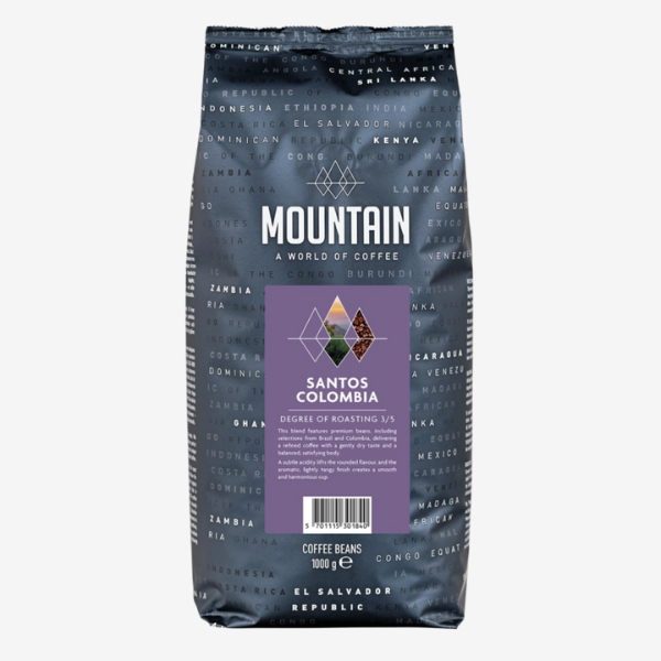 Mountain Santos Colombia er en kaffeblanding baseret på kvalitetsbønner fra blandt andet Brasilien og Colombia. Kombinationen giver en rund og fyldig kaffe med en afbalanceret smagsprofil.