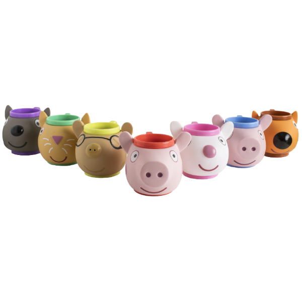Børnebæger med Gurli Gris-motiv i 7 varianter til servering af is og desserter. Leveres assorteret i pakker med 36 stk.