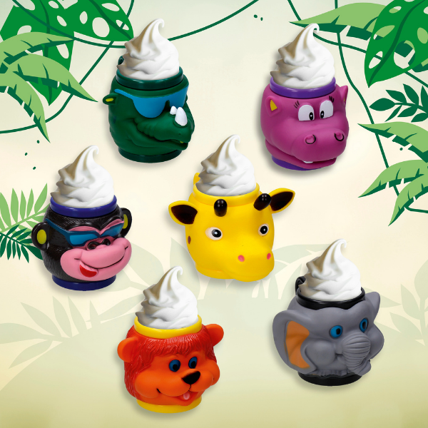 Dette børnebæger med zoo-dyr-motiver er velegnet til servering af is og desserter til børn. Motiverne giver et genkendeligt udtryk og anvendes typisk i isbutikker, caféer og ved events med børneservering.