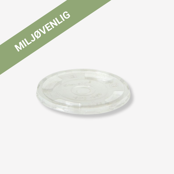 Dette flade låg er fremstillet i plantefibre med PLA-belægning og har en diameter på 96 mm. Låget er designet med hul og anvendes til glas og bægre med sugerør eller ske ved servering af kolde drikke og desserter.