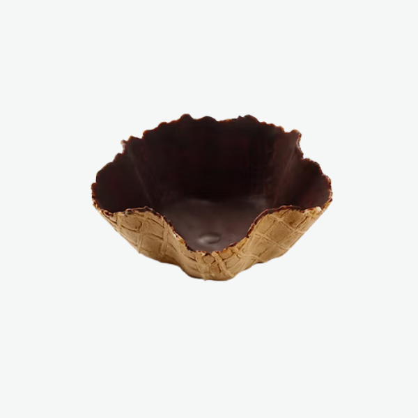 Tulipanformet vaffelskål med indvendigt chokoladeovertræk, der kombinerer dekorativ servering med ekstra smag og forbedret holdbarhed. Chokoladelaget hjælper med at holde vaflen sprød, selv ved servering af is og desserter. Skålen har en bred åbning og buede kanter, som giver god plads til kugleis, softice og mindre dessertanretninger med flødeskum, guf og krymmel. Den lyse, sprøde vaffel i kombination med den fyldige chokolade giver et eksklusivt og indbydende udtryk. Et oplagt valg til caféer og ishuse, der ønsker at tilbyde en mere luksuriøs og dekorativ isservering.