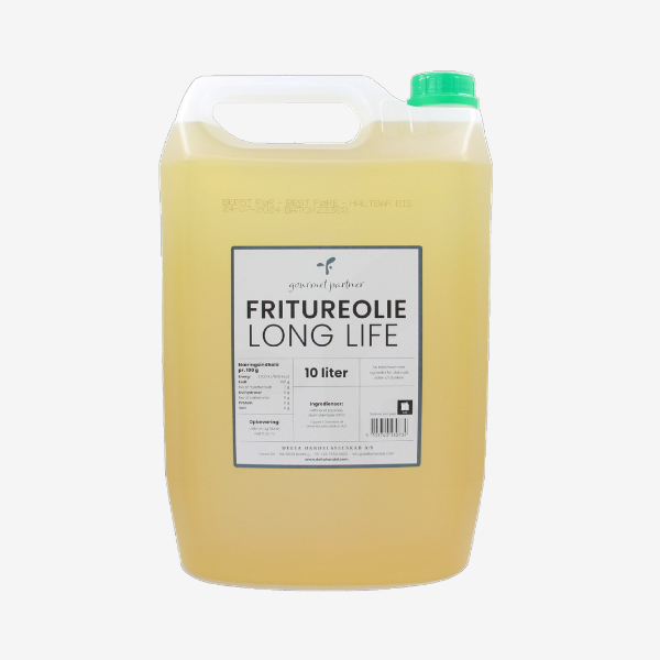 Long Life fritureolie fra Gourmet Partner i 10 l dunk til professionel friturestegning i caféer, restauranter og storkøkkener. Egnet til daglig brug.