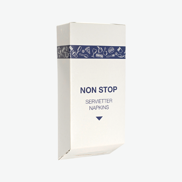 Non-Stop serviet til vægstativ til professionel servering i selvbetjente miljøer. Velegnet til caféer og fastfood – leveres i 12 pakker á 400 stk.