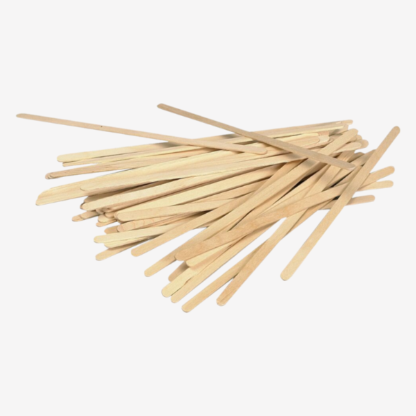 Rørepinde i træ på 19 cm til omrøring af kaffe og andre varme drikke. Velegnet til caféer og take-away – leveres i pakker med 1.000 stk.