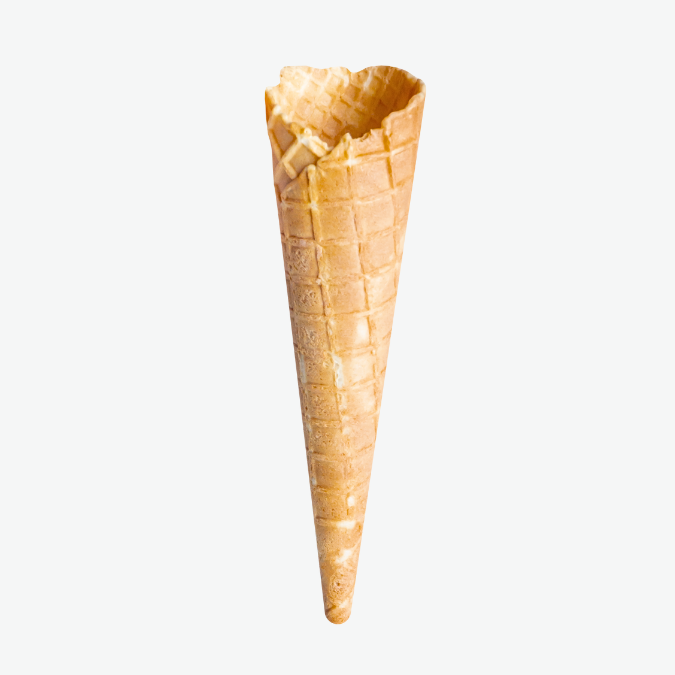Lang softicevaffel med slank form og sprød konsistens. Giver en flot præsentation og er velegnet til mellemstore softiceportioner. Den ekstra højde giver plads til en pæn swirl uden at serveringen bliver for voldsom.