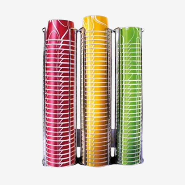 Krom stativ til isbægere til organiseret opbevaring og nem adgang ved professionel is- og dessertservering i caféer og ishuse.